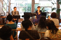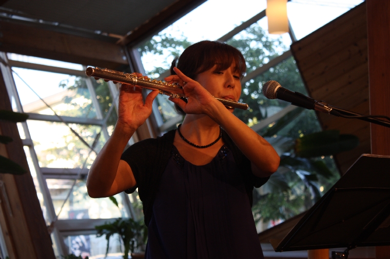 もうひとつは「エスペランサ」の講演スタイルを知らなかったために「フルート=クラシック」と思っていたことだ。一曲目の「情熱大陸」は逆境を乗り越えた奥田さんのイメージにぴったりだったし、ゴンチチの「放課後の音楽室」は弦楽器の曲をフルートで見事に表現したものだった。なお、曲の選定について彼女はこう語っている。