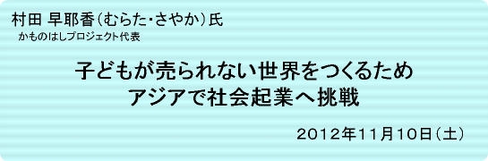「だまされて、売られる子どもを守りたい。」というスローガンを掲げる「NPO法人かものはしプロジェクト」――。代表理事の村田早耶香氏は、大学の講義で10歳にも満たない女の子が1万円程度で売られて売春を強要されている現実を知り、19歳で活動に身を投じました。