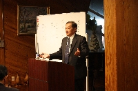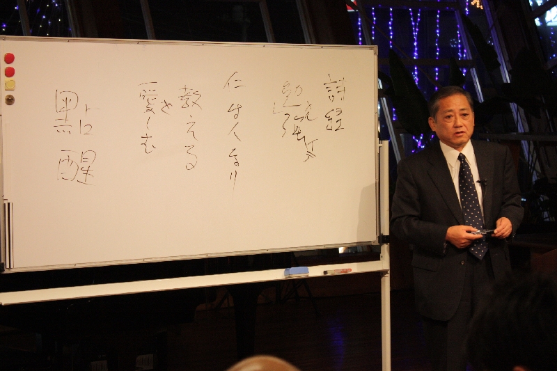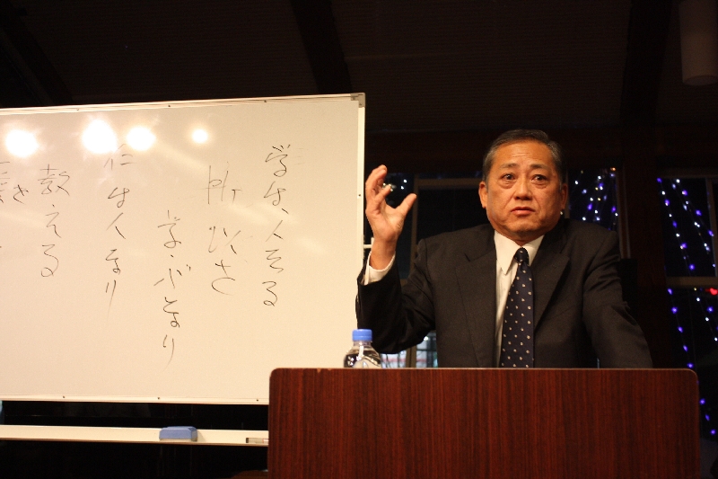 タイトルは「點醒の達人、愛しむ人づくり 吉田松陰と松下村塾に学ぶ」。そして講師は、松陰研究家で人間環境大学教授の川口雅昭先生。熱く熱く、語られました。
