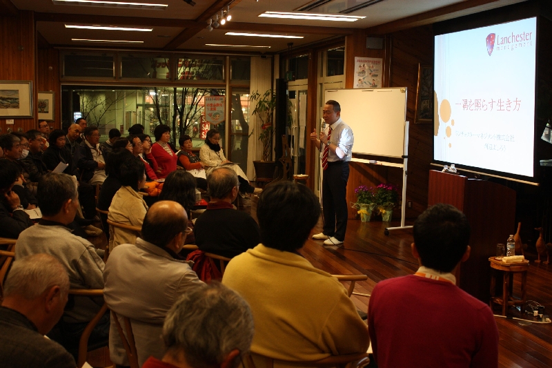 いつもはランチェスターの法則を経営に活かす話をしていますが、今回は人生についても語って欲しいといわれ、世界を放浪してユダヤ商法や華僑商法に出会い、起業して成功したり失敗したりといった話を披露させていただきました。