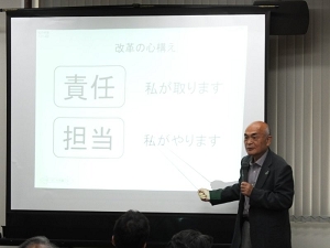 - 1942年山梨県生まれ。1961年松下電器産業入社後、松下通信工業に配属。当時全従業員数1万人の社内のゴミを99%資源化。さらに、松下グループ全体のゴミ98%資源化を推進。平成14年同社退職後、横浜市G30作戦に参画。当初10年を目標に推進していた30%のゴミ削減をわずか4年で達成した。