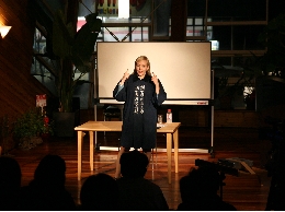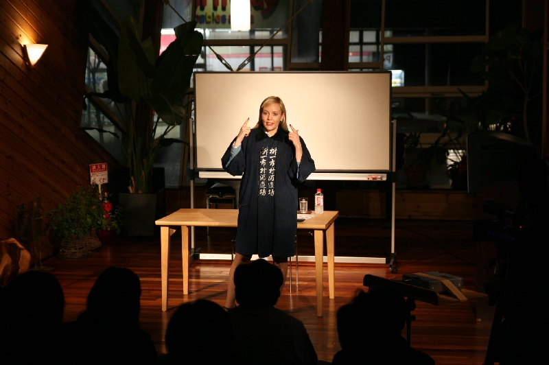 - 金髪のうら若き女性のはっぴ姿。これでもかこれでもかとくる話の中身の面白さと、話術の巧みさで、90分間があっという間に過ぎ去っていった。