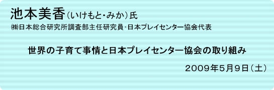 また、池本氏は、子どもの自発的な遊びと、教育者としての親の重要性に注目した活動を展開するニュージーランドのプレイセンター活動に触発され、日本プレイセンター協会を立ち上げました。